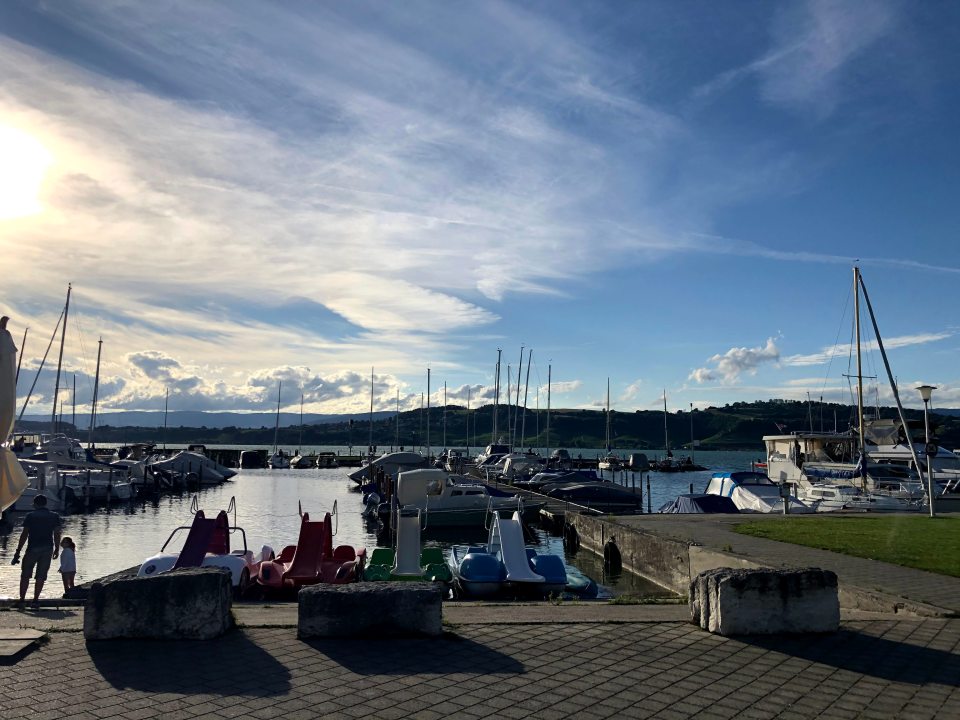 Il faut savoir que la ville de Morat est le point de départ de nombreuses excursions en bateau. En effet, il est possible de faire des excursions juste sur le Lac de Morat et même d’aller sur les lacs de Neuchâtel et de Bienne. L’idée nous a effleuré l’esprit tant cela doit être magnifique. Malheureusement porter un masque pendant 8h sur un bateau nous a refroidi.