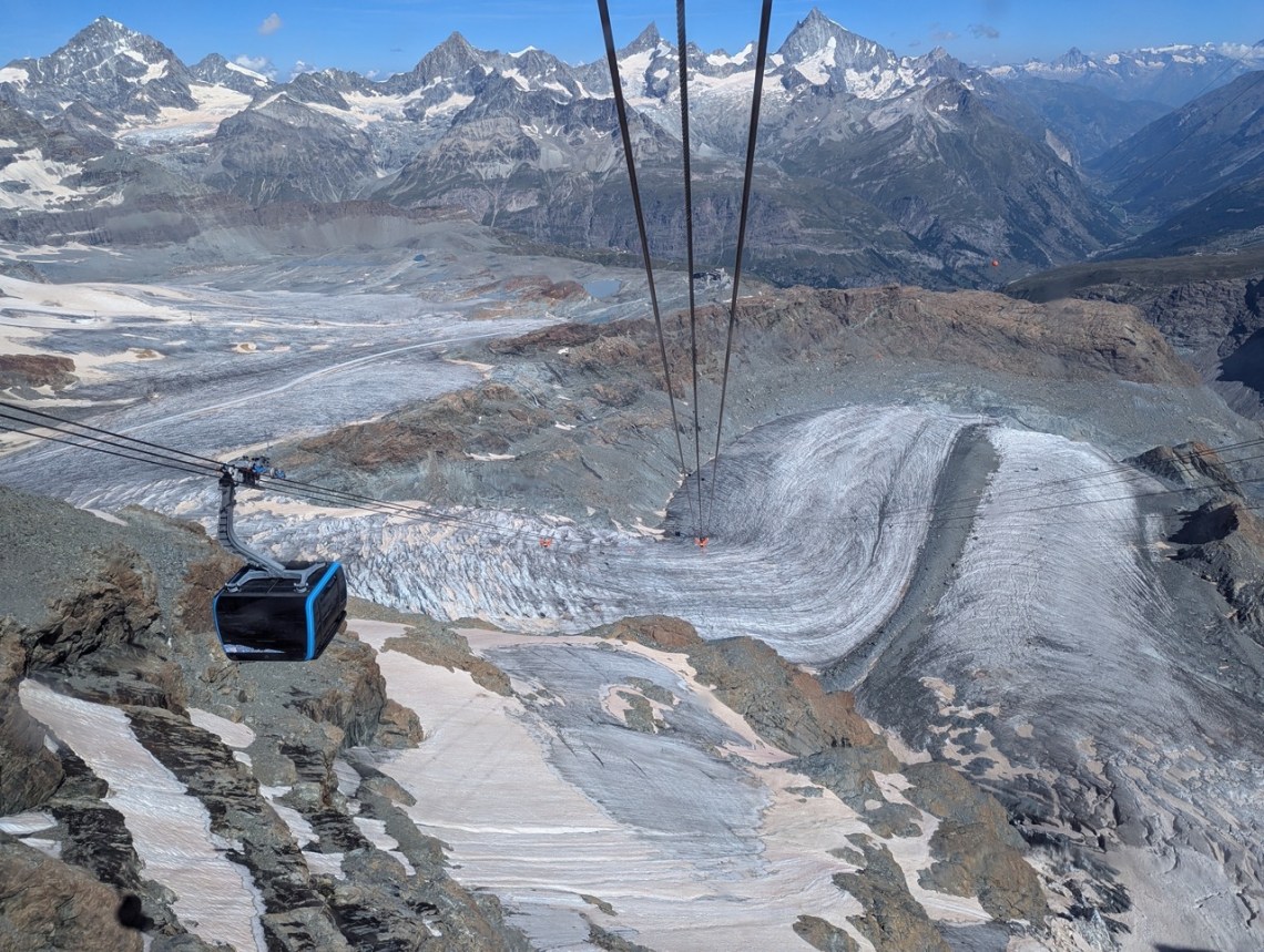 Ensuite, vous devrez prendre un premier téléphérique jusqu’à la station de Trockener Steg, puis un second téléphérique vous emmènera jusqu’au Matterhorn Glacier Paradise. Vous aurez une vue incroyable sur le Cervin.