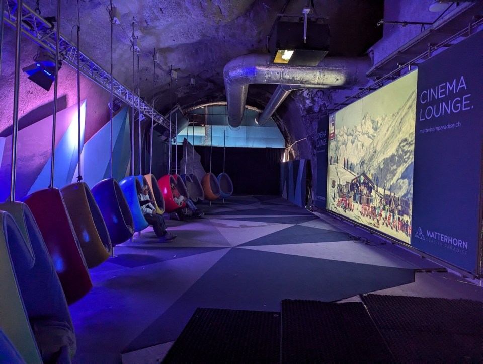 Il y également un cinéma lounge où des films sur les Alpes et le Cervin sont projetés. Etant donné le froid à l’intérieur, nous n’avons pas vraiment pris le temps de nous installer confortablement !
