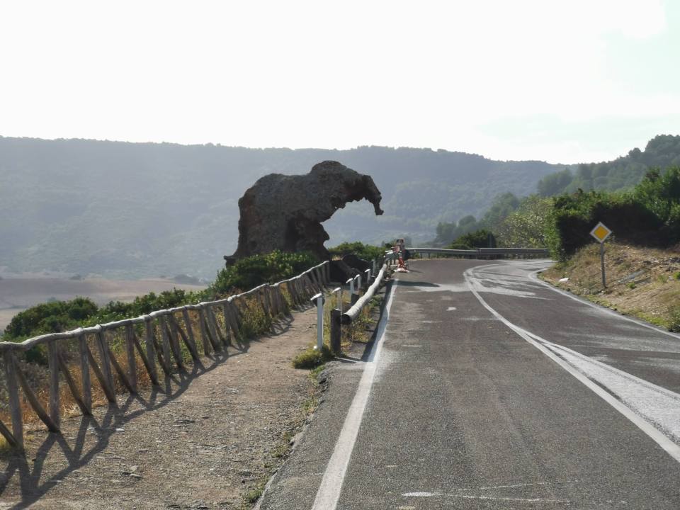 Avant d’arriver à Castelsardo, arrêt obligatoire au rocher de l éléphant (roccia dell’Elefante), un rocher d’environ 4 mètres de haut. Ce rocher est une attraction touristique! Et oui, des bus entiers s’arrêtent pour que les touristes descendent, se mettent au milieu de la route et prennent une photo de ce rocher ! Comment résister à l’idée de faire pareil (sans risquer de se faire écraser bien sûr ! )