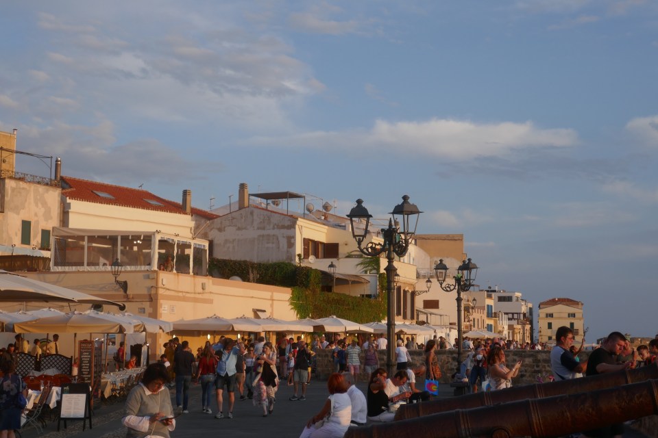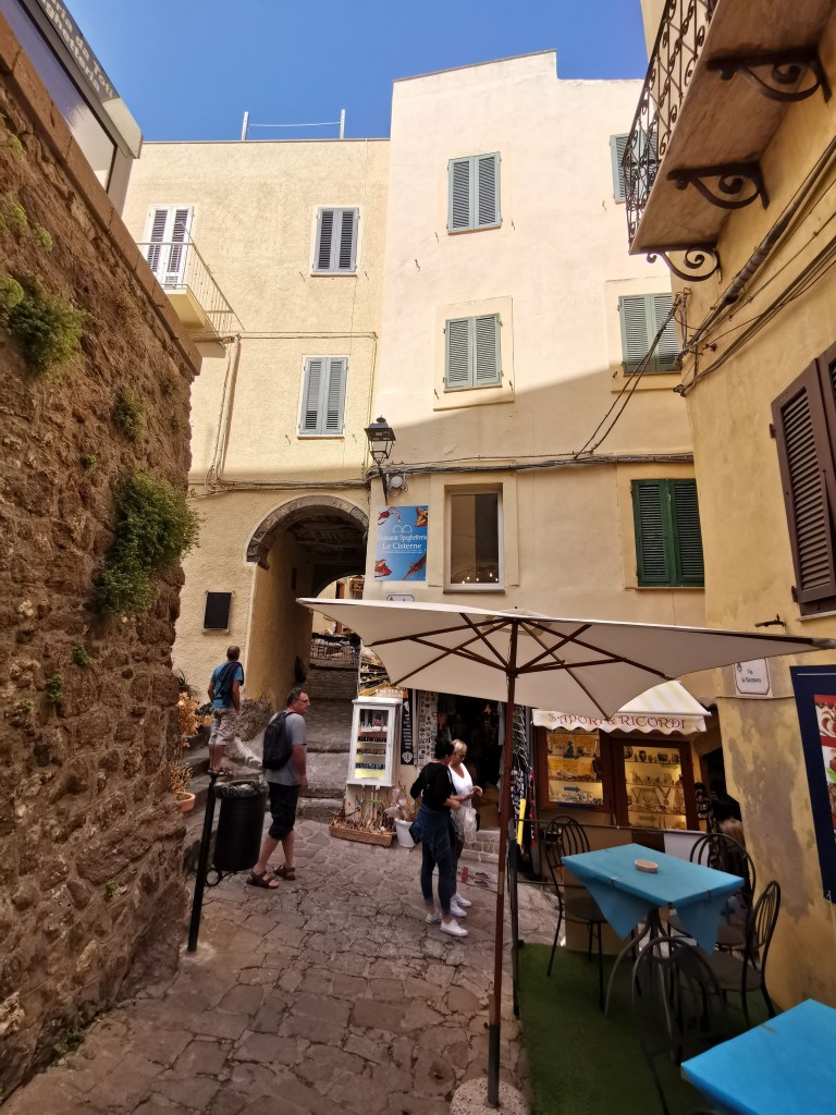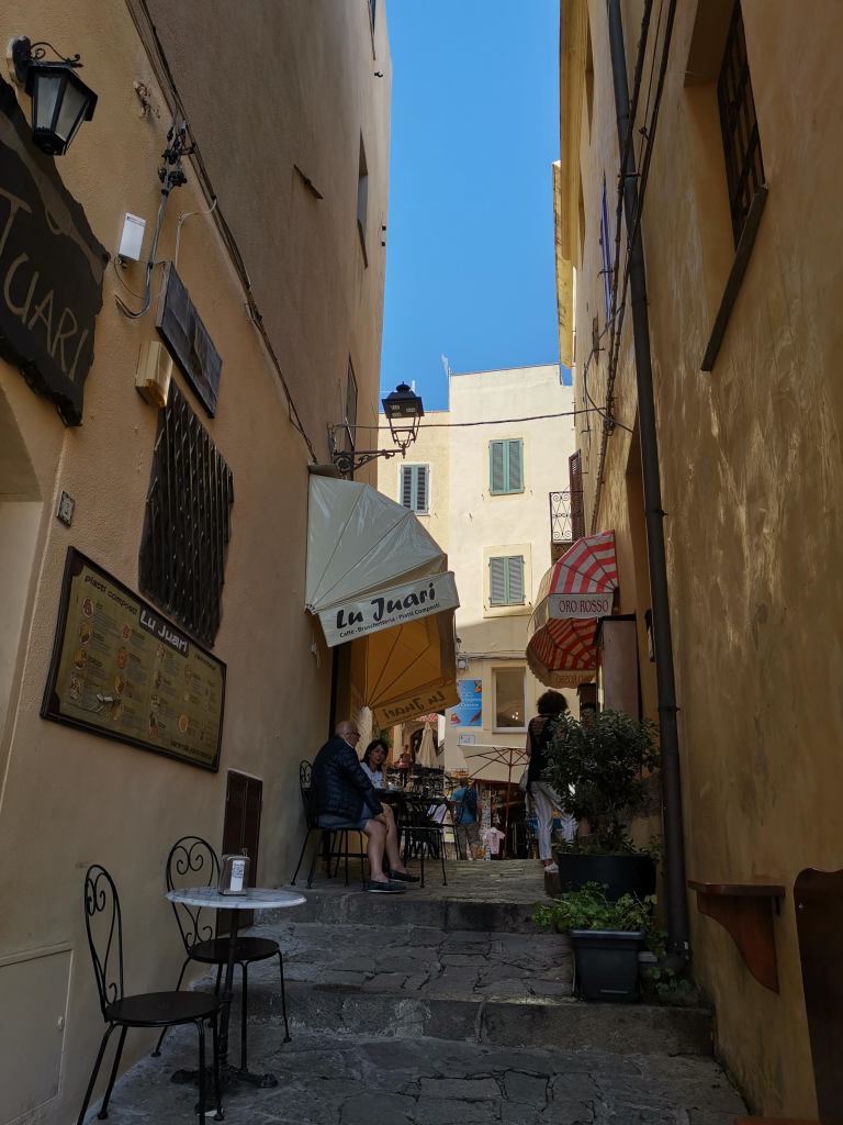 Remis de nos émotions, on peut profiter d’Alghero. Et la gros coup de cœur pour cette ville de 44 000 habitants (la 5 ème de Sardaigne). Les quatre siècles de domination espagnole (catalan-aragonaise) persistent encore dans la culture, l’architecture et la langue parlée, ce qui a laissé des fortes influences catalanes.
