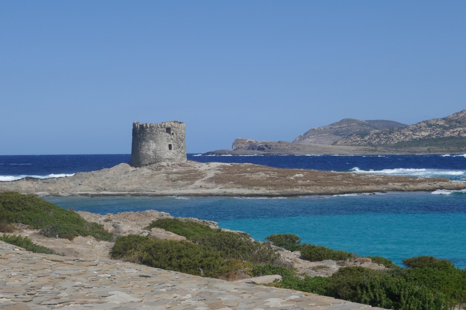 THE plage! Dans tous les guides de voyages consacrés à la Sardaigne , vous avez des photos de la plage de la Pelosa. Evidemment n’espérez pas être seul sur cette plage! Et puis le comble, est qu’il est nécessaire d’acheter une natte de plage pour la poser sur le sable afin de ne pas l’abîmer. Des vendeurs en proposent pour 10€. Non pas qu’on soit en mode rebelle, mais on décide de juste prendre des photos de cette plage, qui, on peut se l’avouer est quand même magnifique ! Quelle couleur de l’eau!