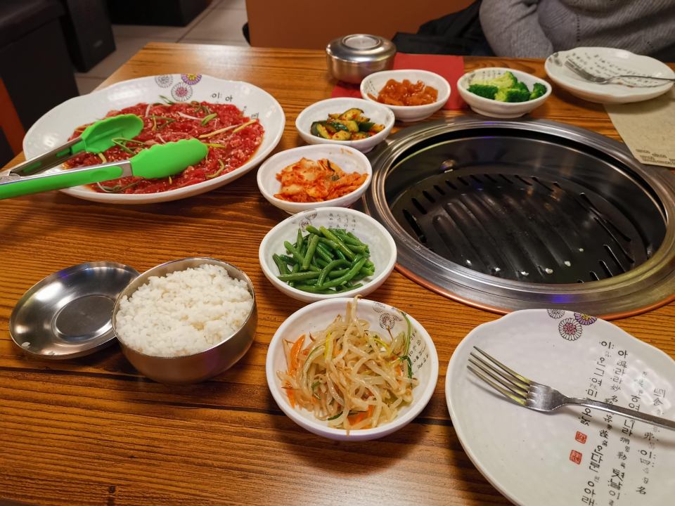 La première fois que je suis allée dans un restaurant corréen était à Sydney. J’en gardais un bon souvenir (à part le fait que c’était vraiment très épicé). Par conséquent, ce restaurant étant situé juste à coté de l’hôtel, était l’occasion de tester à nouveau la nourriture coréenne.