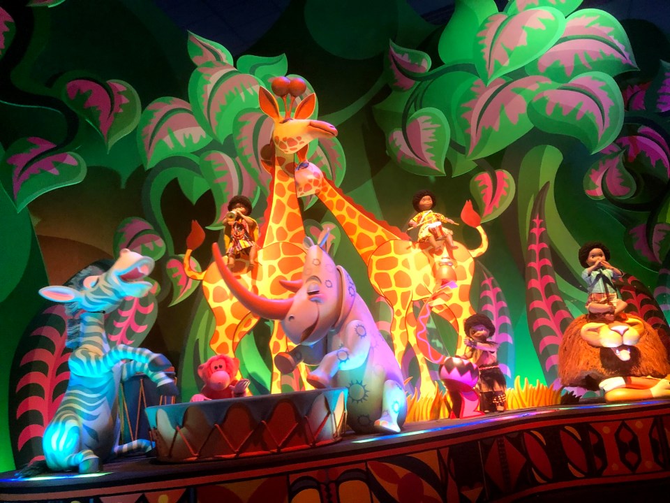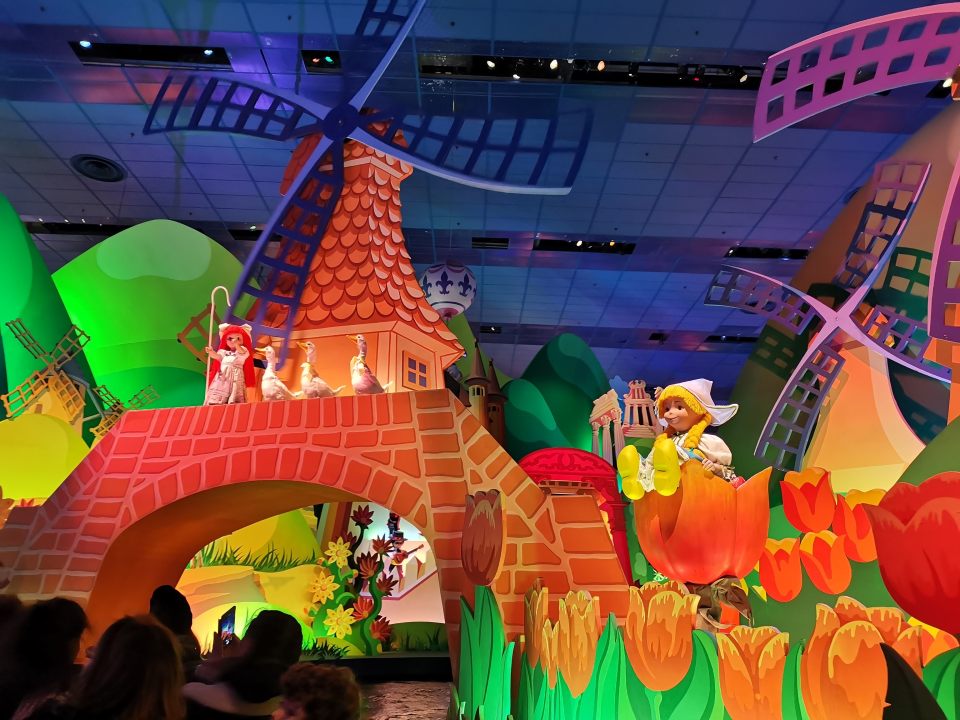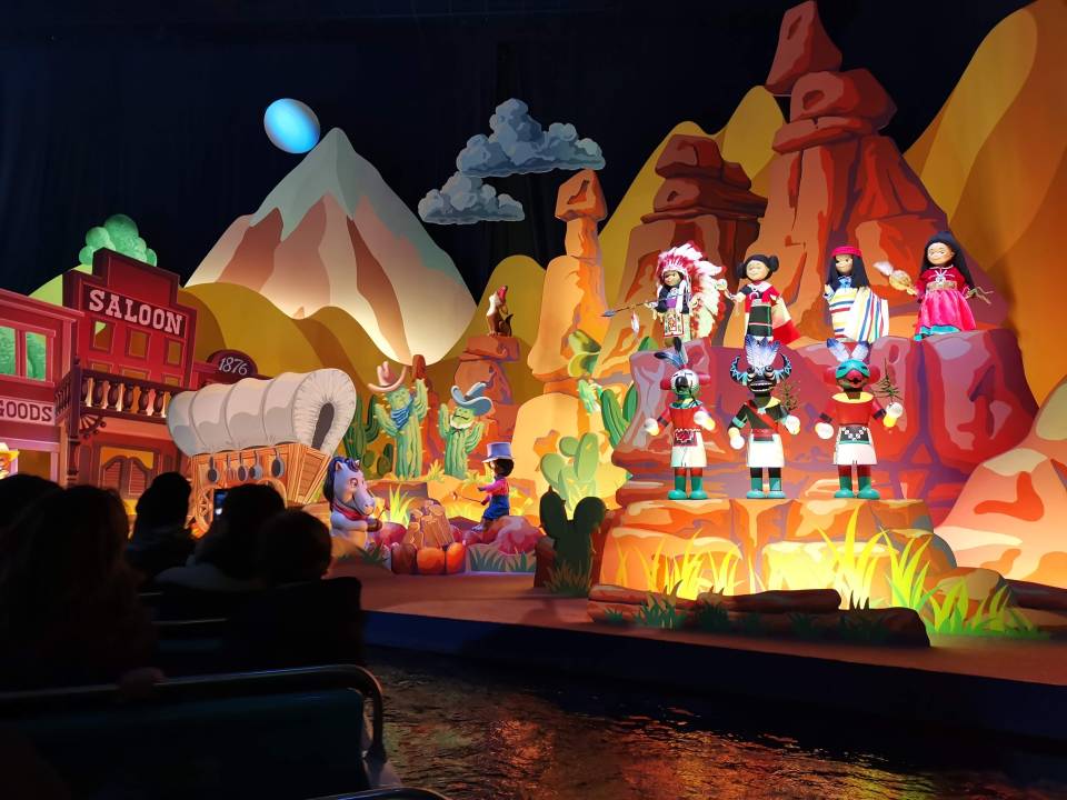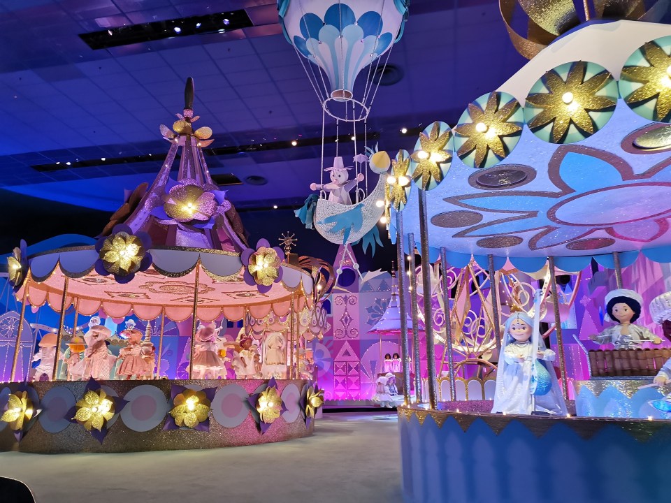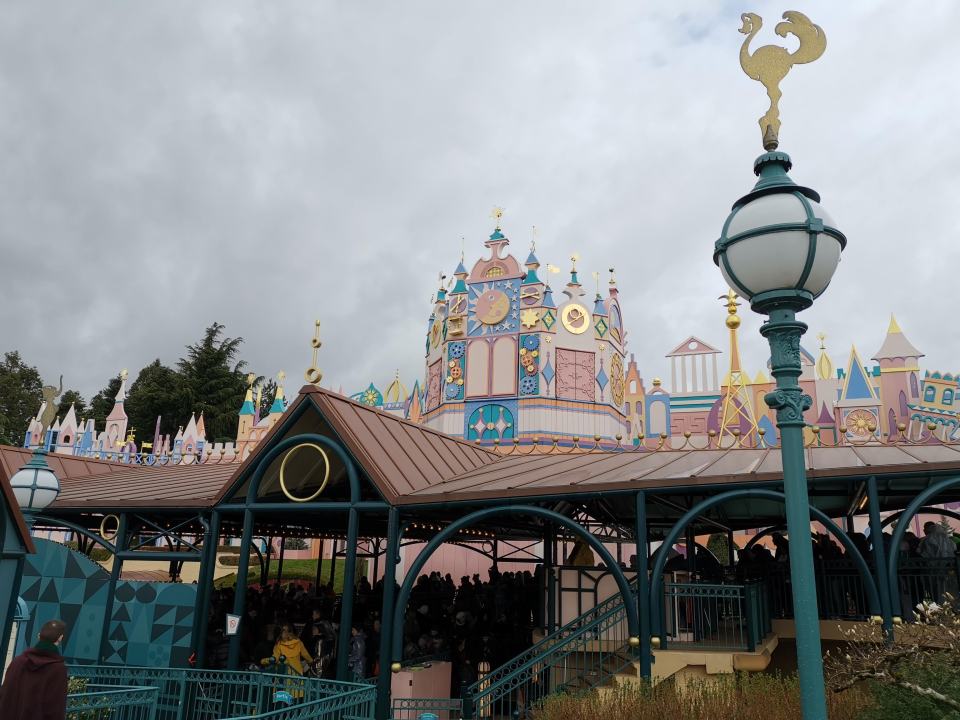 Changement de style avec It’s a small word situé dans Fantasyland. On prend place à bord de bateaux qui nous emmènent dans différents décors représentant les grandes régions du monde. Il y a environ 300 poupées animées, une cinquantaine de jouets et près de 250 accessoires animés.