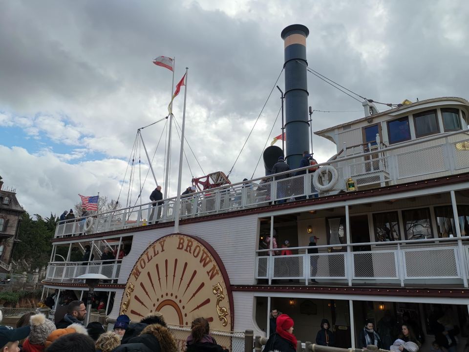 Depuis le débarcadère de Thunder Mesa (dans Fontierland), on monte à bord d’un bateau à vapeur (soit le Molly Brown soit le Mark Twain) inspiré du XIXe siècle. Ainsi, on navigue sur les Rivers of the Far West pendant 15 minutes environ.
