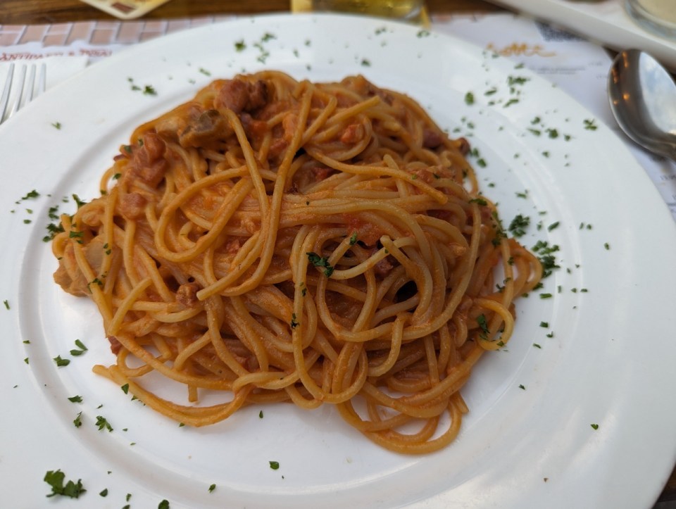 Pour notre deuxième soirée à Lugano, nous avons mangé des spaghettis avec une vue sur le lac de Lugano dans le restaurant Spaghetti Store.